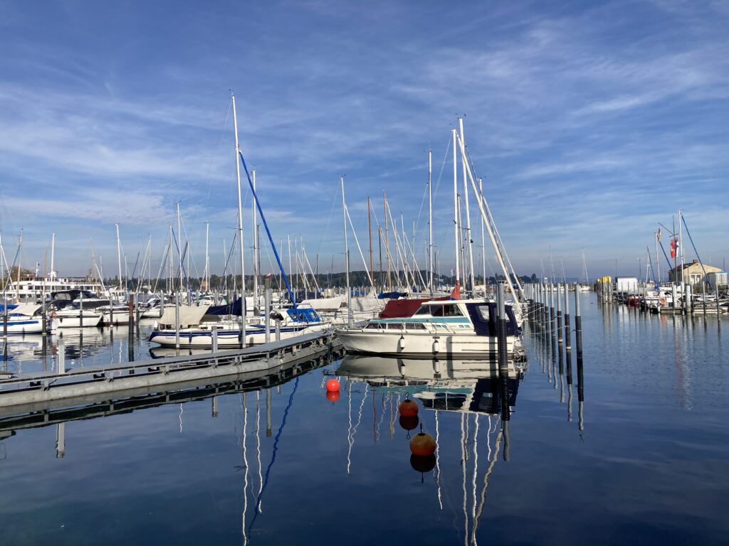 Später Nachmittag führte der Weg wieder ans Ufer, wo die Herbstsonne noch einmal kräftig durchkam. Menschen saßen am See, Boote lagen ruhig im Hafen, und der Blick reichte weit bis zur gegenüberliegenden Seite. Die letzten Aufnahmen entstanden am Steg und am Bahnhof, bevor es am Abend mit dem Zug zurück nach Hause ging. Ein kurzer Ausflug – aber voll mit klaren Eindrücken, viel Licht und einem angenehmen Herbstgefühl, das Konstanz an diesem Tag perfekt eingefangen hat.