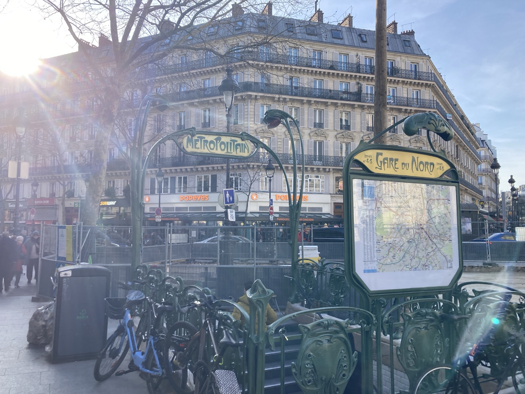 Als ich am späten Nachmittag in Paris ankam, lag schon dieses typische Schimmern über der Stadt – ein Mix aus Hektik, Energie und Erwartung. Ich ließ mein Auto in einem Vorort stehen und fuhr etwa 45 Minuten mit dem Zug ins Zentrum. Als ich schließlich am Magenta / Gare du Nord ausstieg, stand ich mitten in einer eigenen Welt. Der Bahnhof wirkte wie ein gewaltiges Tor zur Stadt: hohe Hallen, viel Metall, viel Bewegung – und gleichzeitig beeindruckende Architektur, innen wie außen.
