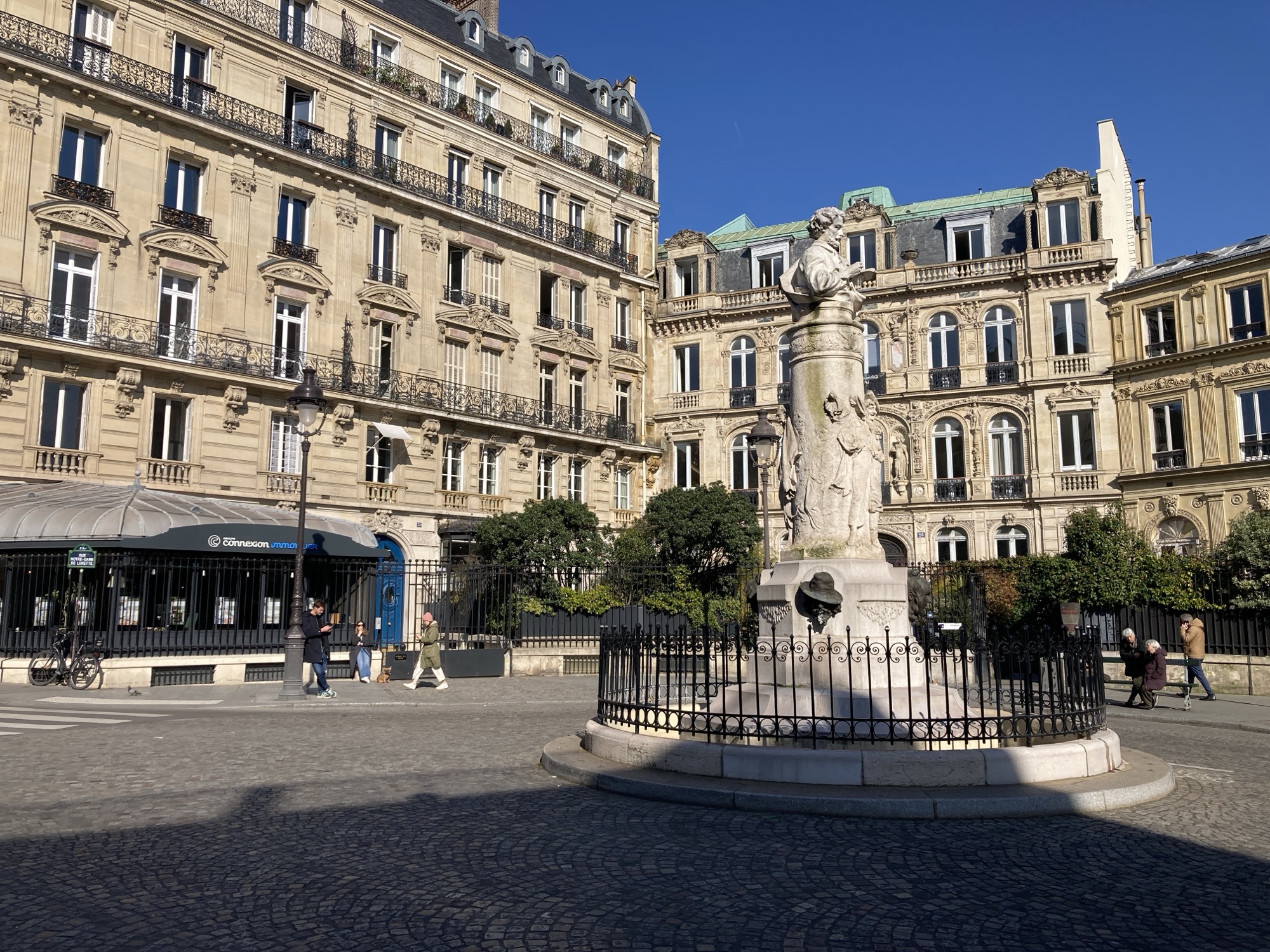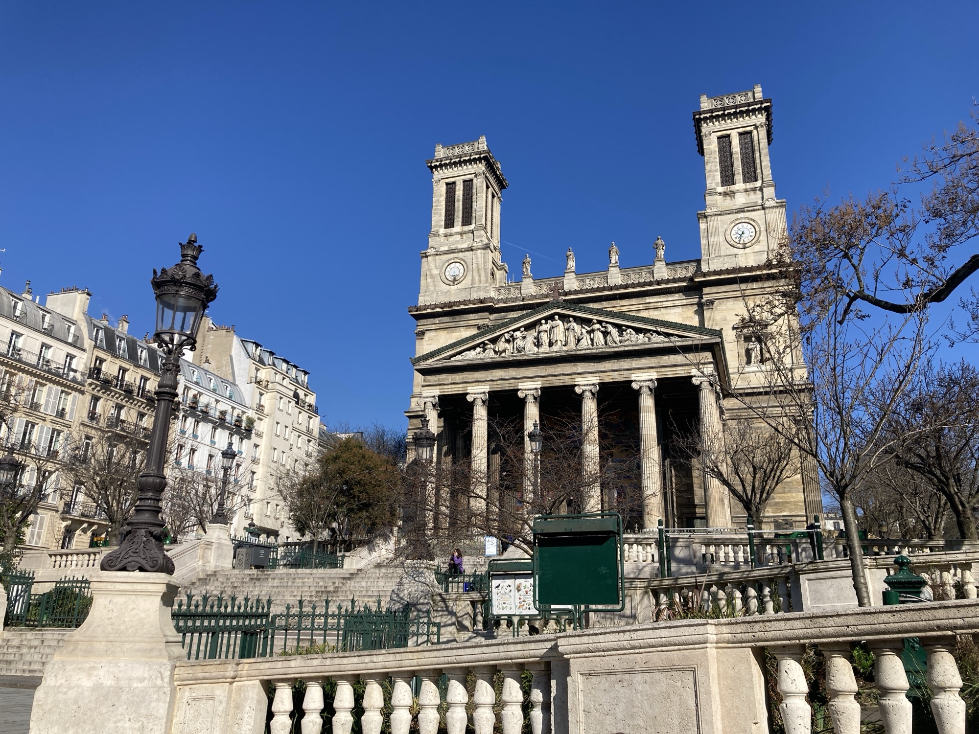 Der Abstieg führte mich am kleinen Karussell am Fuß der Kirche vorbei und weiter Richtung Moulin Rouge. Die berühmte rote Mühle war allerdings teilweise verdeckt – Bauarbeiten. Trotzdem hatte das Viertel seinen eigenen Charme: enge Gassen, kleine Bars, bunte Schilder, ein Mix aus Alltag und Geschichte. Ich ließ mich treiben, wechselte immer wieder die Straße, entdeckte schöne kleine Plätze und ruhige Ecken mitten im lebhaften Paris.