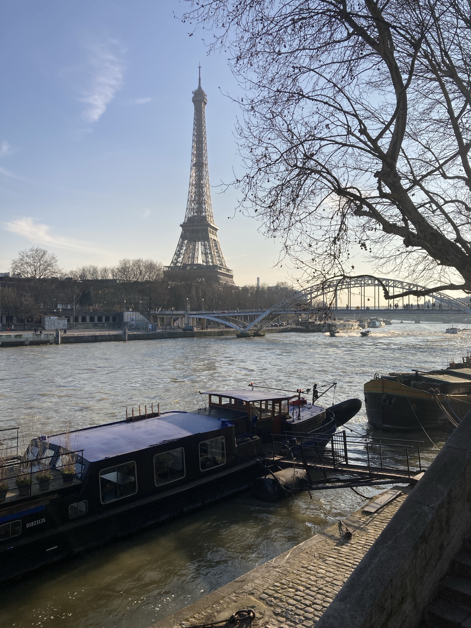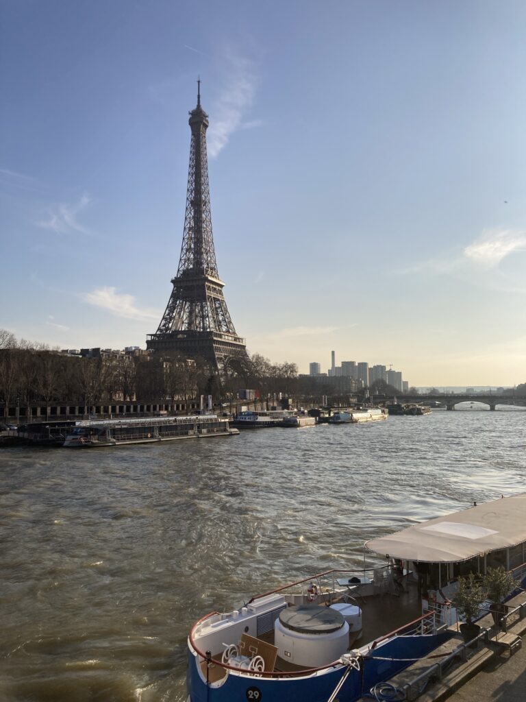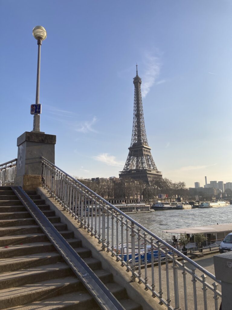 Am späten Nachmittag zog es mich wieder Richtung Seine. Die Stadt veränderte sich mit dem Licht – Schatten wurden länger, Farben weicher. Ich folgte dem Ufer, bis sich schließlich der Eiffelturm vor mir auftat. Genau im richtigen Moment begann die Goldene Stunde. Das warme Licht legte sich über das Wasser, die Brücken, die Boote und die Eisenkonstruktion des Turms. Perfekt, um ein paar beeindruckende Fotos einzufangen – und einfach stehen zu bleiben, um diesen fast magischen Übergang zwischen Tag und Abend zu erleben.
