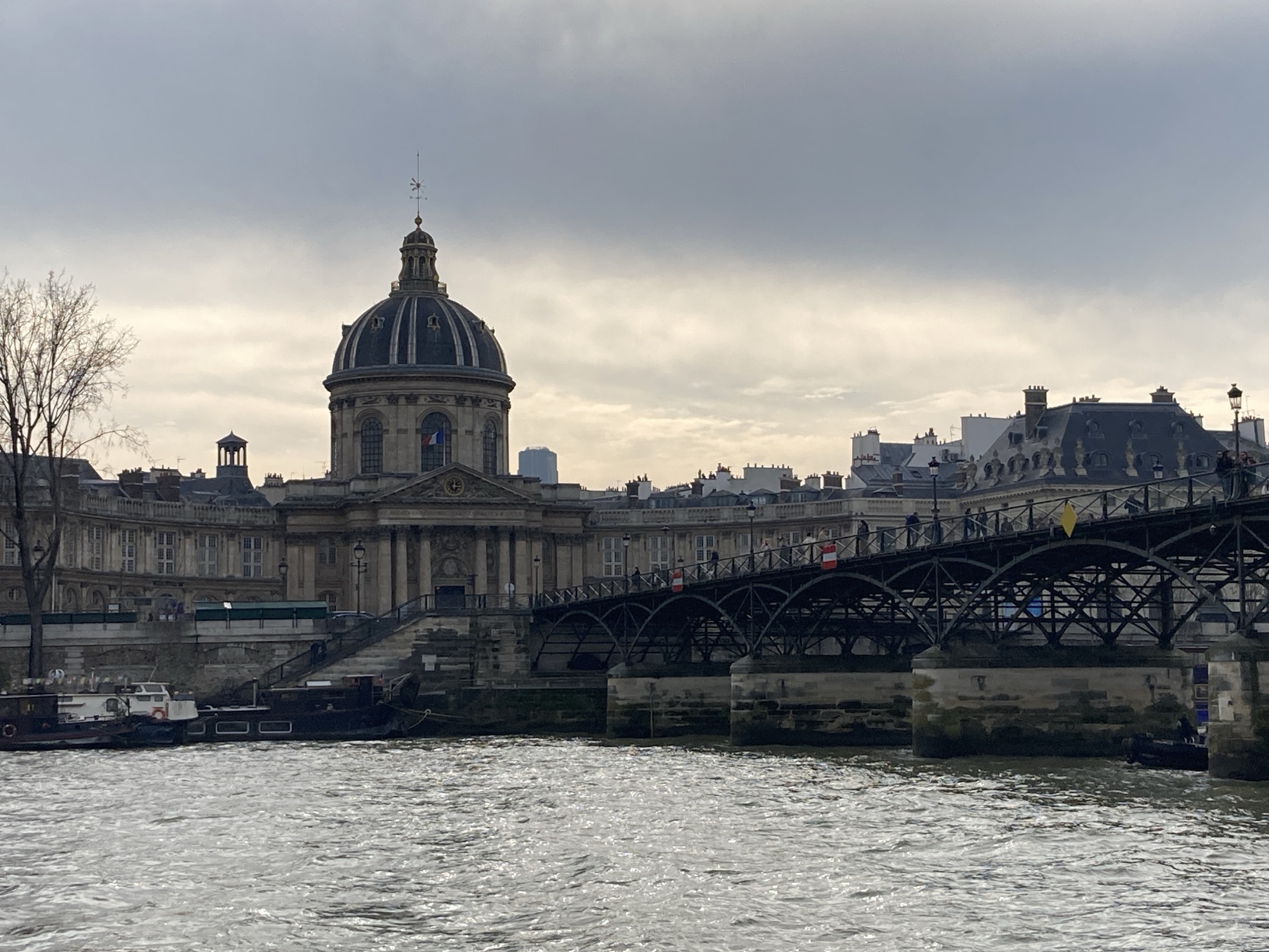 Ich folgte weiter dem Flusslauf, und plötzlich tauchte wieder die Kuppel des Institut de France auf. Ein klassischer Anblick, der nie alt wird. Von hier aus war es nur ein kurzer Weg zur Pont des Arts, wo ich mich eine Weile ans Geländer lehnte, den Blick über die Seine schweifen ließ und einfach die Leichtigkeit dieses Moments genoss.