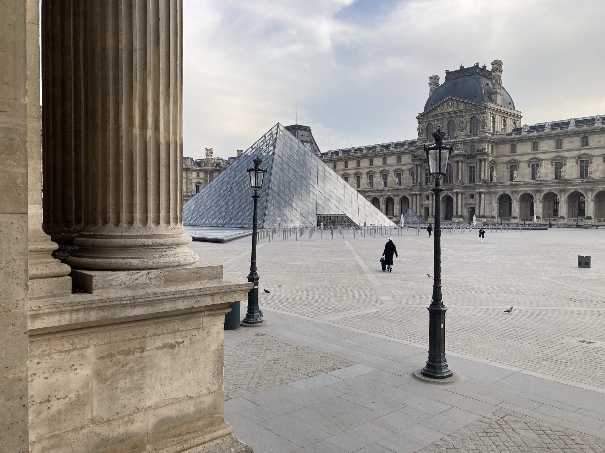 Zum Abschluss führte mich der Weg zurück Richtung Louvre. Die Sicht auf die Pyramiden aus der Ferne markierte den Kreis, den ich an diesem Tag zu Fuß gezogen hatte. Und als ich schließlich wieder zwischen den Säulen stand, mit dem weiten Platz vor mir, fühlte sich der Tag rund an – voll von ruhigen Wegen, intensiven Eindrücken und genau der Art von Paris-Stimmung, für die man immer wieder zurückkommt.