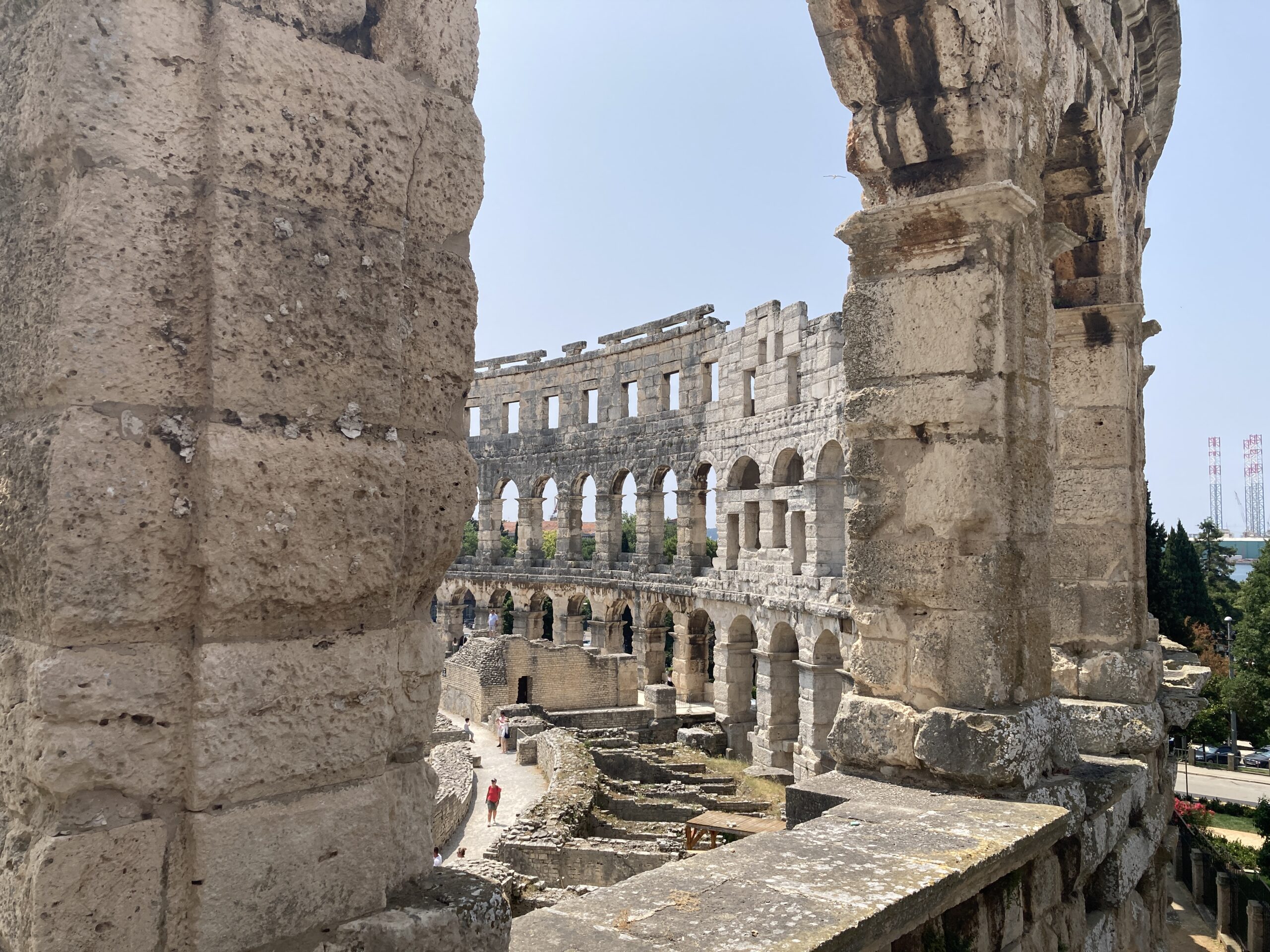 An der Südspitze der kroatischen Halbinsel Istrien liegt Pula, eine Stadt, in der sich über 2.000 Jahre Geschichte mit mediterraner Lebensart verbinden. Schon beim ersten Blick fällt das mächtige römische Amphitheater auf, eines der am besten erhaltenen der Welt und bis heute das bekannteste Wahrzeichen der Stadt. Doch Pula ist mehr als nur ein antikes Monument. Zwischen engen Gassen, historischen Plätzen und der lebendigen Uferpromenade spürst du überall die Spuren verschiedener Kulturen, von der römischen Antike über venezianische Einflüsse bis zur österreichisch-ungarischen Zeit.