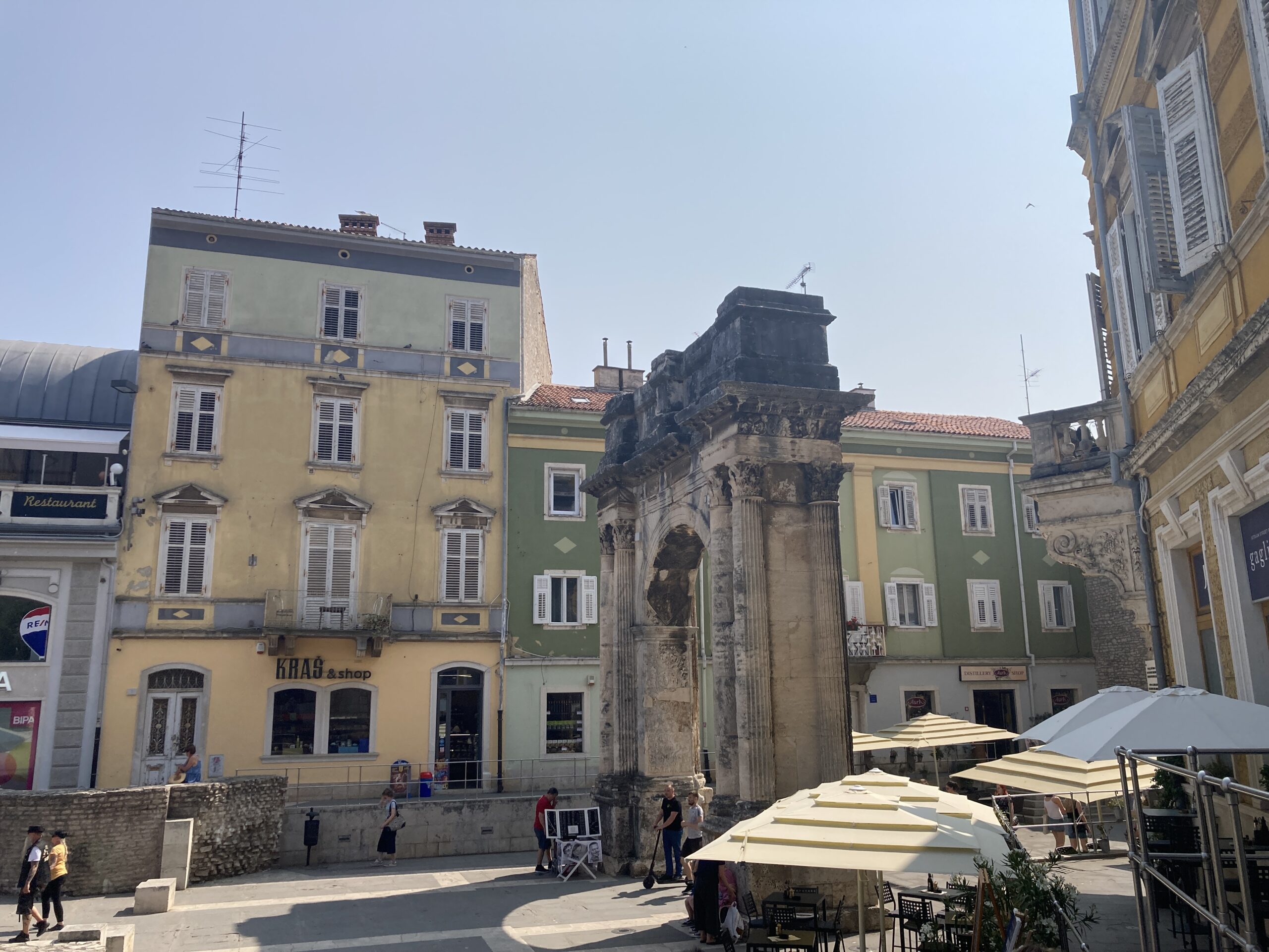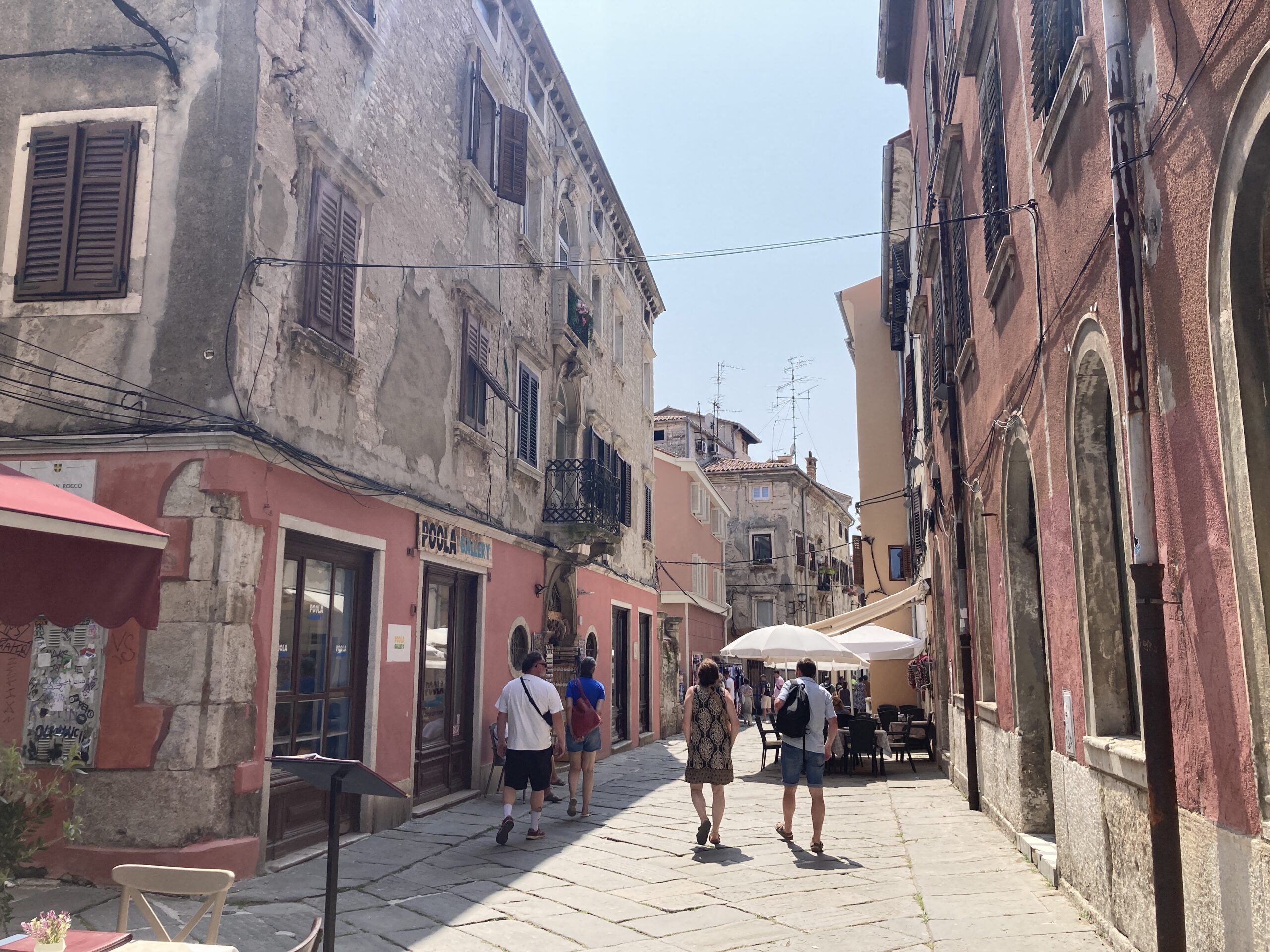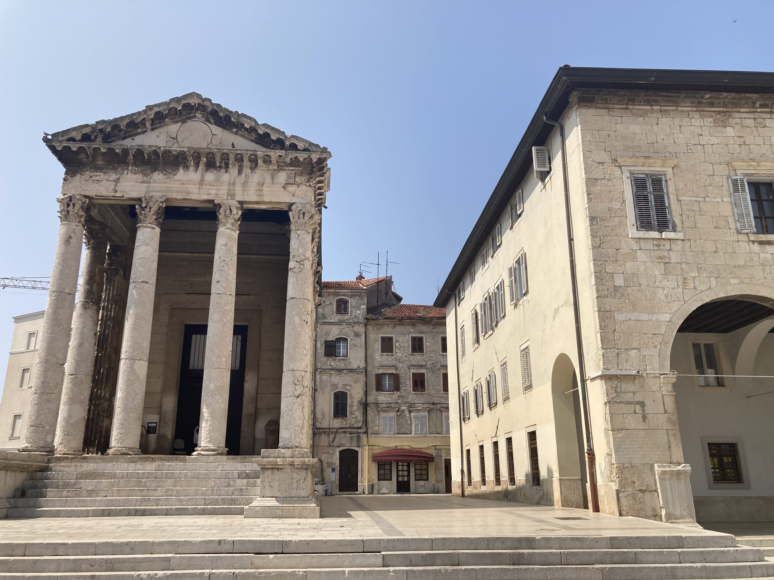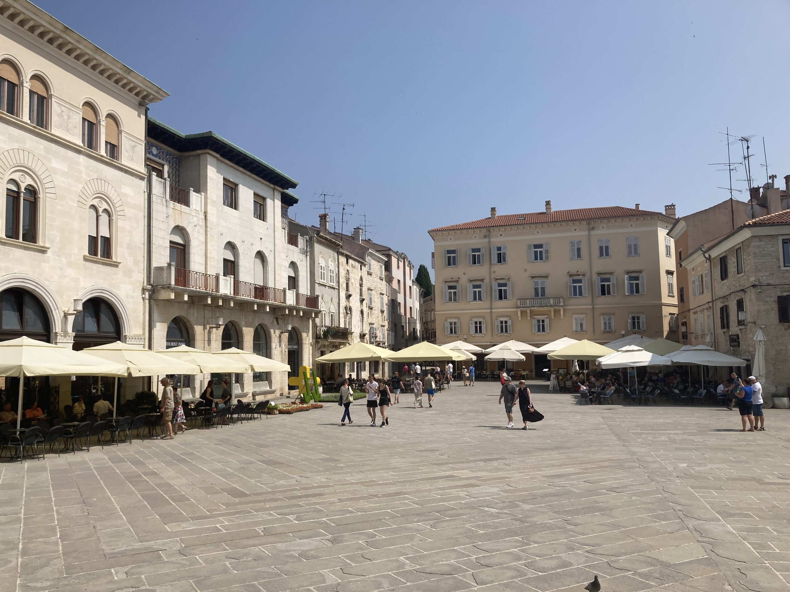 Rund um die Altstadt öffnen sich immer wieder Ausblicke auf den tiefblauen Adriaraum, auf kleine Buchten, Häfen und Pinienküsten. Cafés, Märkte und ruhige Plätze verleihen der Stadt eine entspannte Atmosphäre, während nur wenige Minuten entfernt bereits das klare Wasser und die felsigen Strände Istriens warten. Pula verbindet Geschichte, Meer und südliche Gelassenheit auf eine Weise, die den Ort sowohl kulturell als auch landschaftlich zu einem der spannendsten Ziele Kroatiens macht.