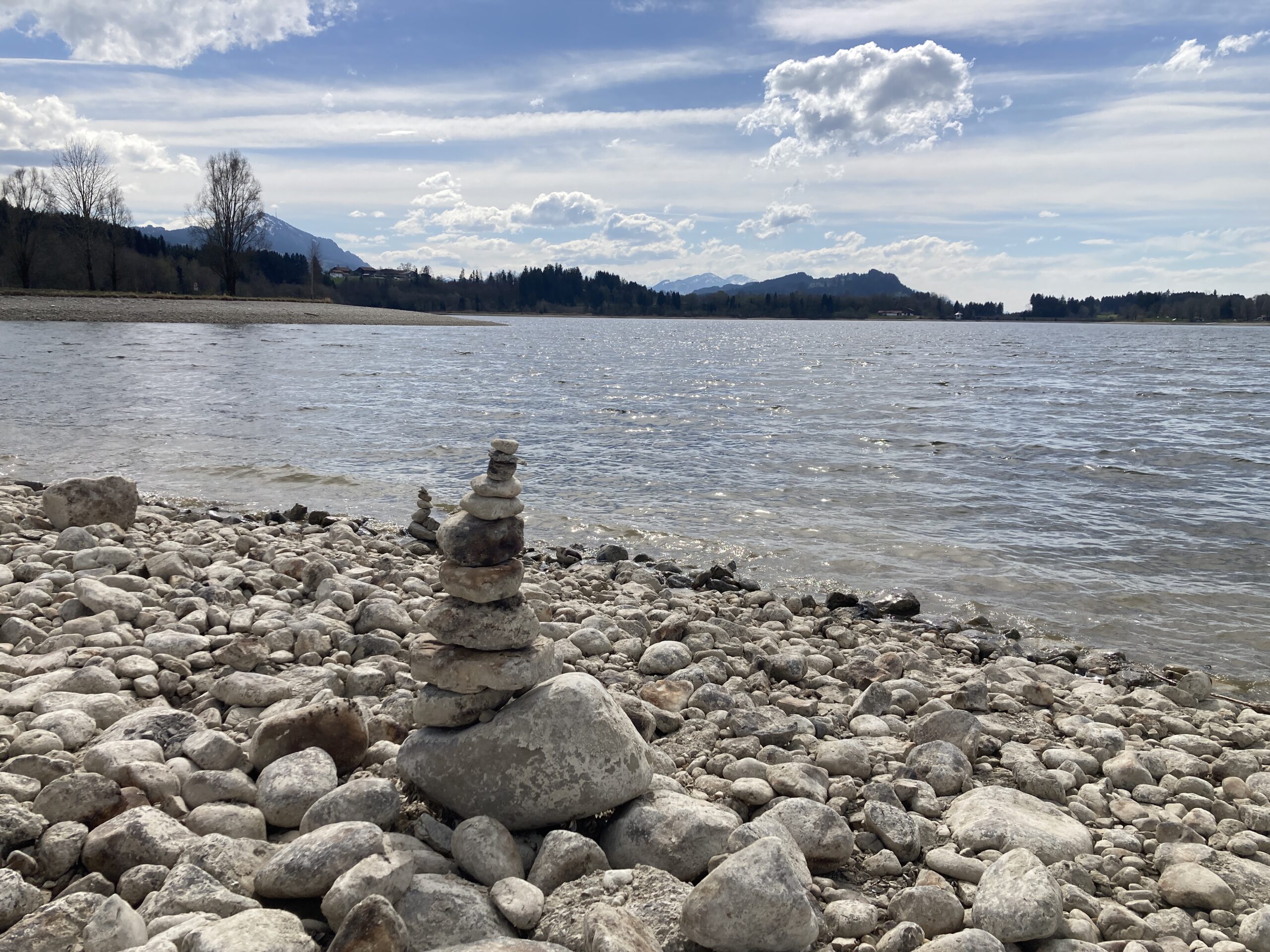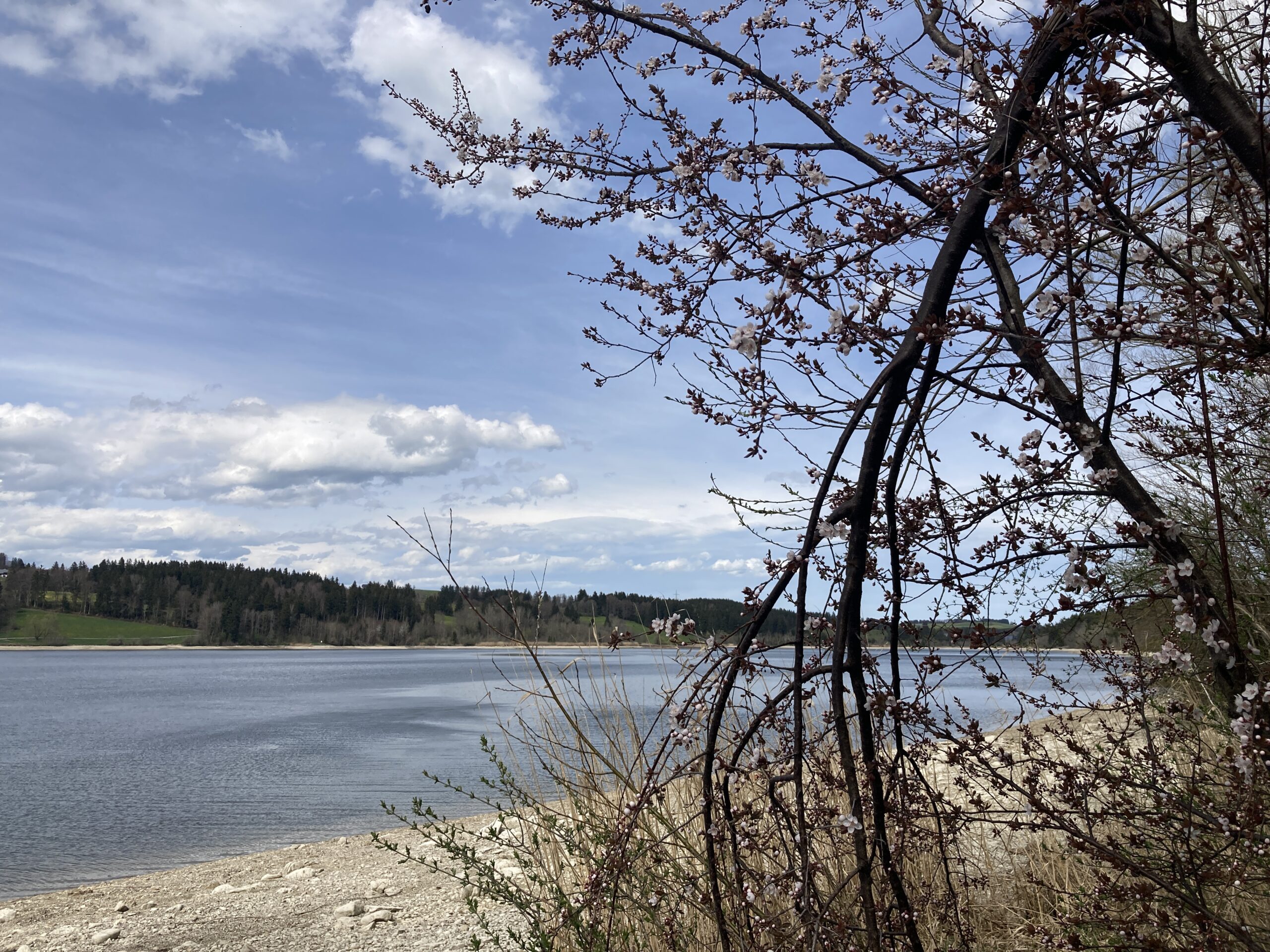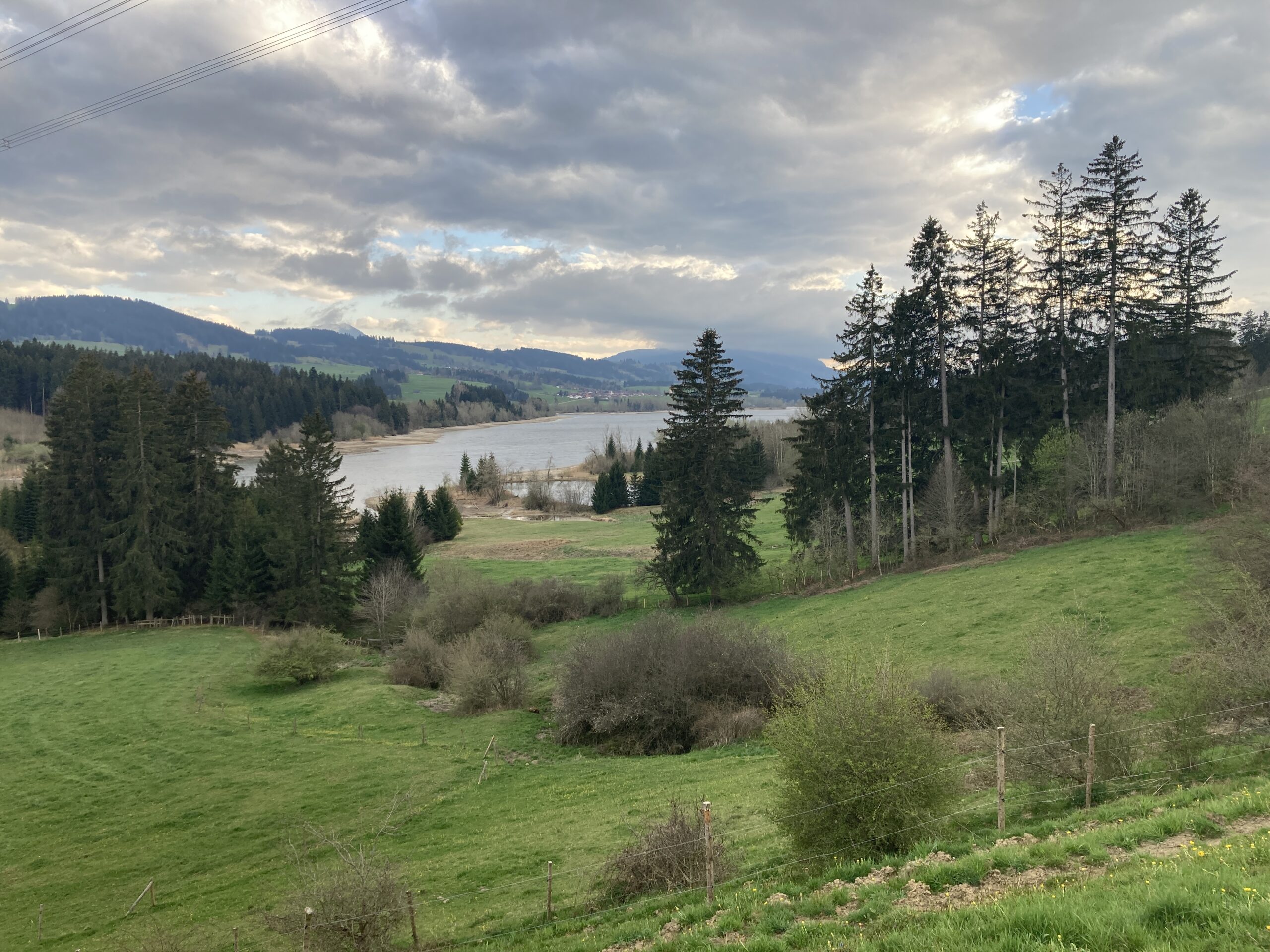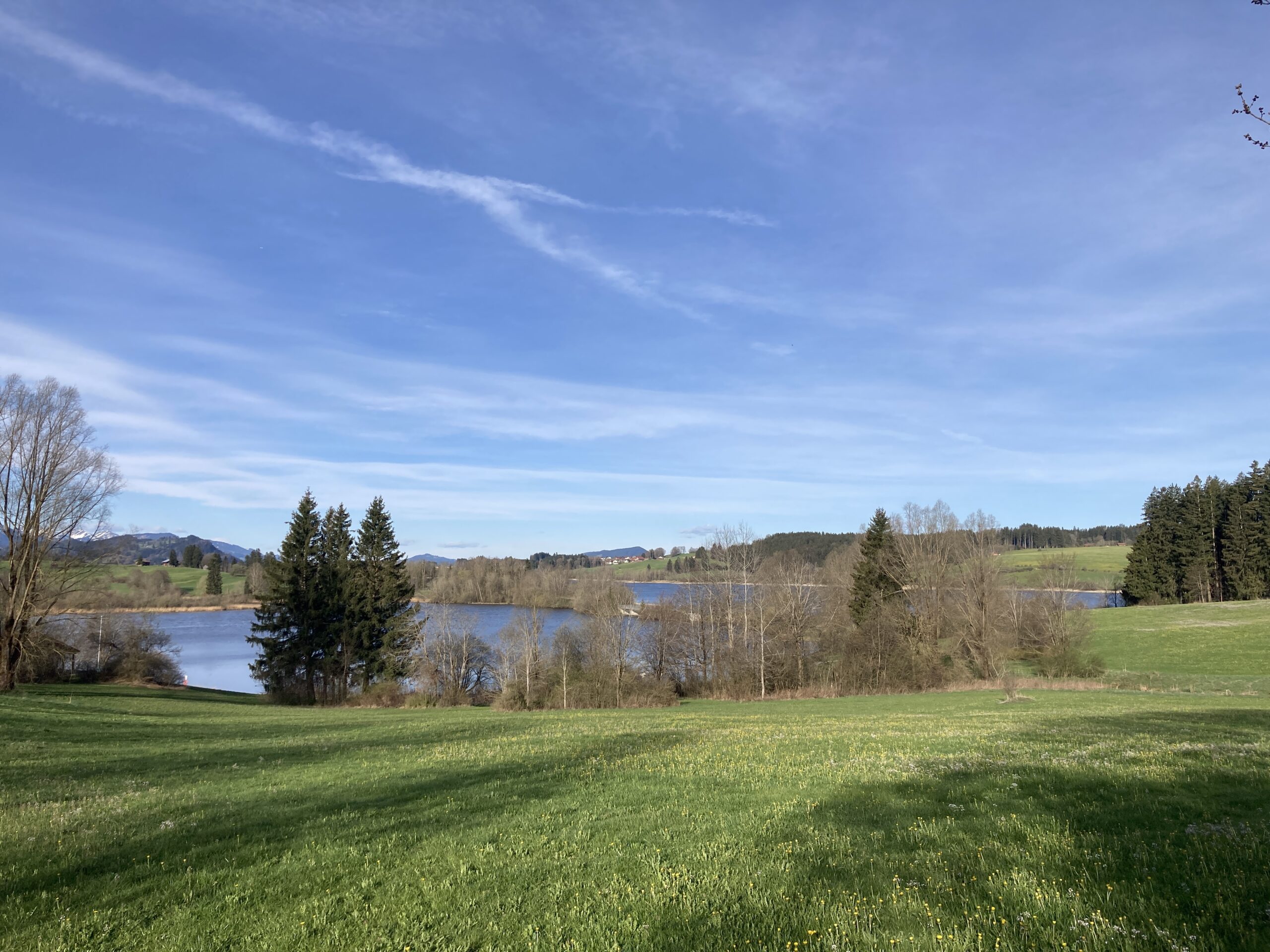 Der See wurde in den 1990er-Jahren als Stausee angelegt und verbindet heute Erholung, Naturraum und sanften Tourismus. Rund um das Ufer führen gut ausgebaute Wege, die sich ideal für Spaziergänge, Radtouren oder eine entspannte Runde zum Sonnenuntergang eignen. Immer wieder öffnen sich Perspektiven auf das Wasser, auf grüne Wiesen und – bei klarer Sicht – auf die markanten Gipfel der Allgäuer Alpen.