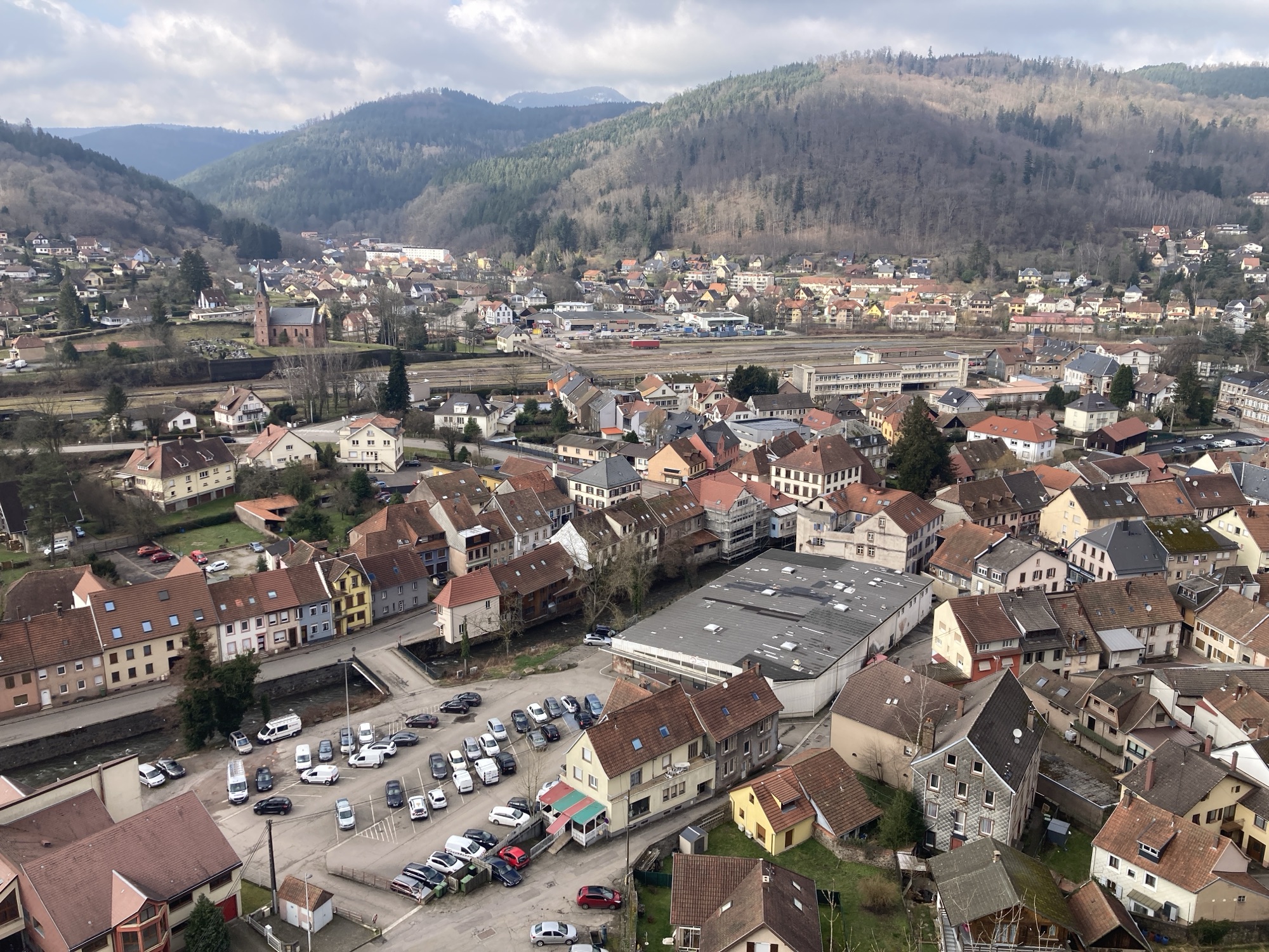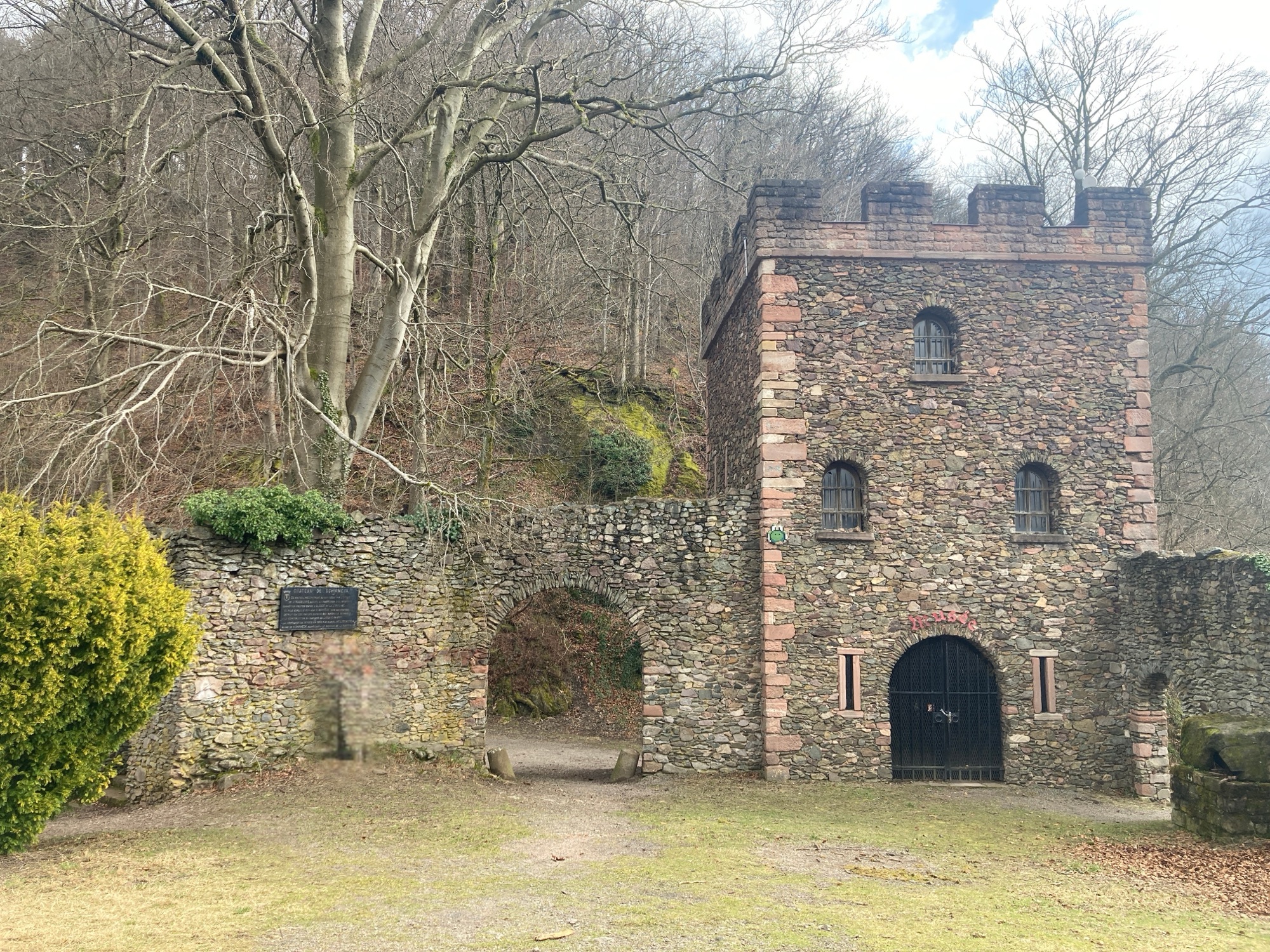 Oben angekommen, öffnete sich der Blick: ein beeindruckendes Panorama über das Tal, die Dächer von Schirmeck und die umliegende Hügellandschaft. Die Ruine selbst ist erstaunlich gut erhalten – verwitterte Mauern, ein alter Turm, Spuren vergangener Jahrhunderte. Der Ort strahlt Ruhe aus, und in diesem Moment, mit leichtem Wind und Fernsicht, war es einer dieser kleinen Reiseaugenblicke, die bleiben – unerwartet, ehrlich und wunderschön.