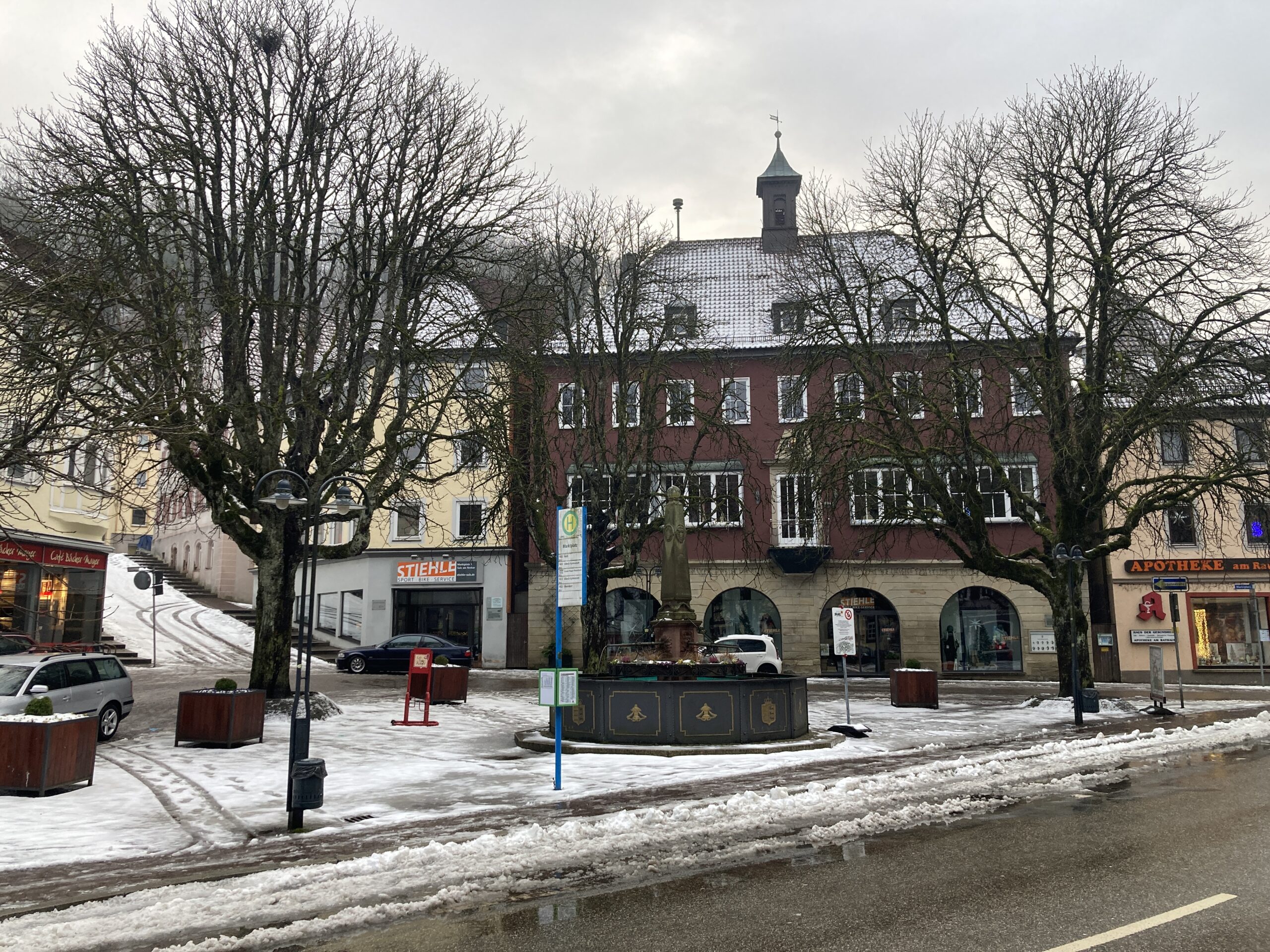 Vom Bahnhof aus führte mich mein Weg zuerst in die kleine Innenstadt. Die Straßen waren noch leicht verschneit, und die Fachwerkhäuser wirkten unter dem grauen Winterhimmel fast wie gemalt. Am Marktplatz herrschte eine ruhige, entspannte Atmosphäre – ein paar Autos, vereinzelt Menschen, die ihren Alltag erledigten, und dazwischen diese charmanten Häuserzeilen, die der Stadt ihren Charakter geben.
