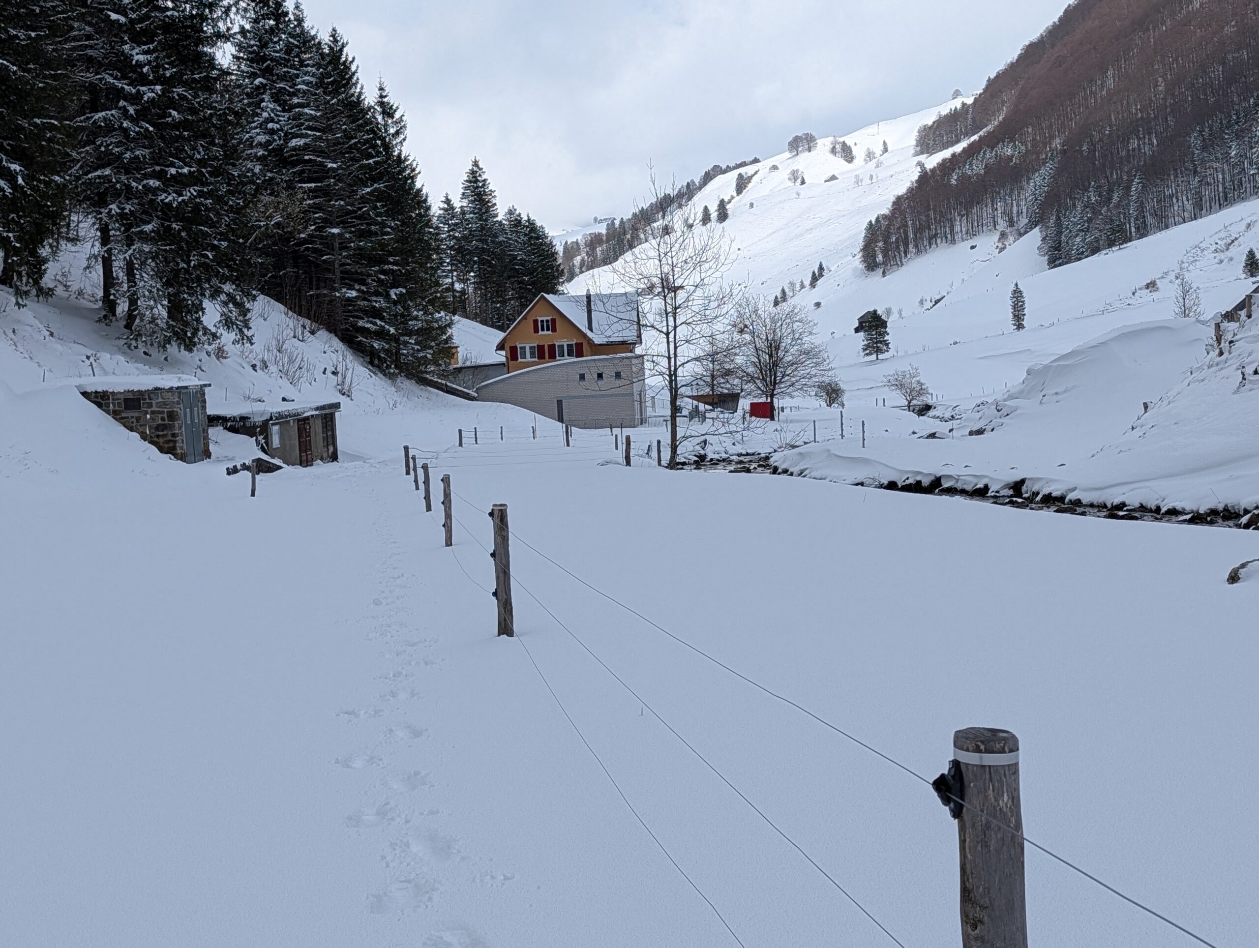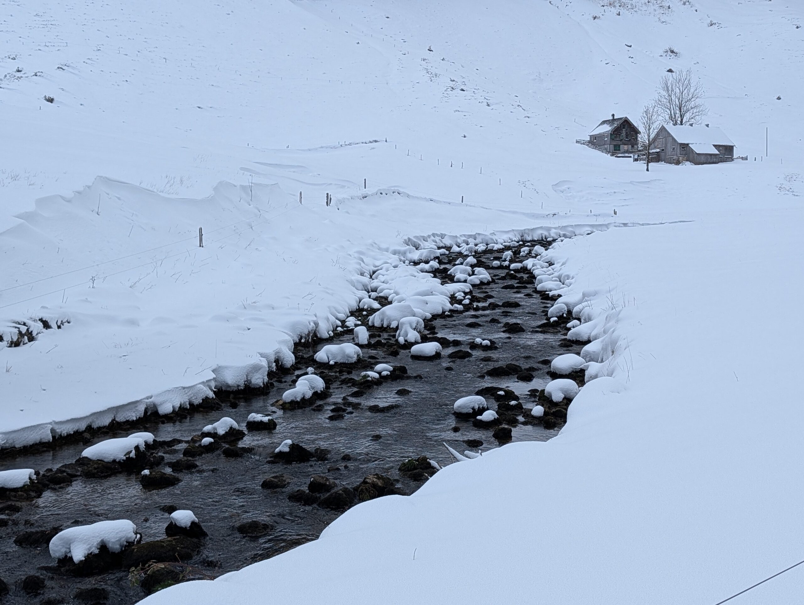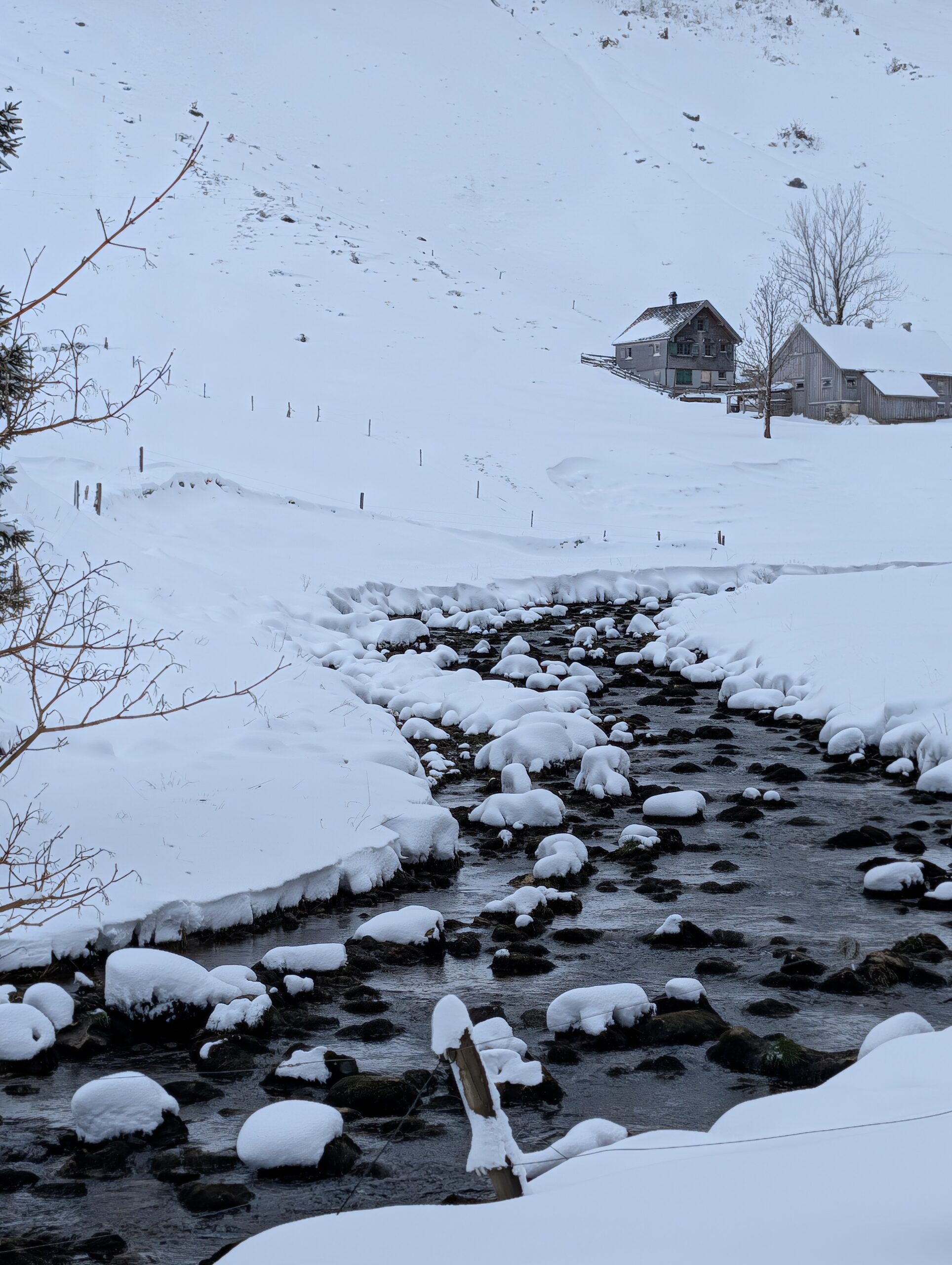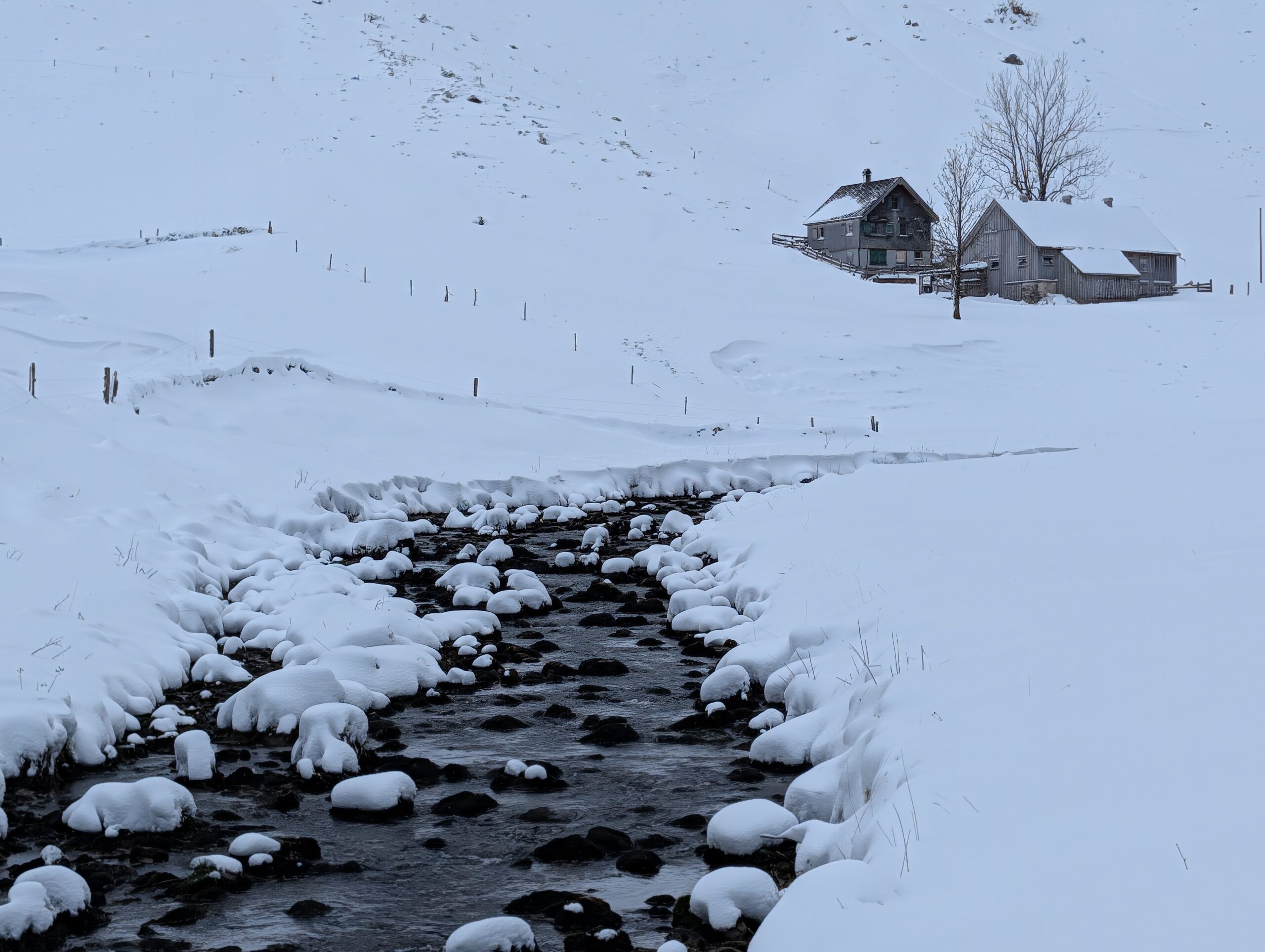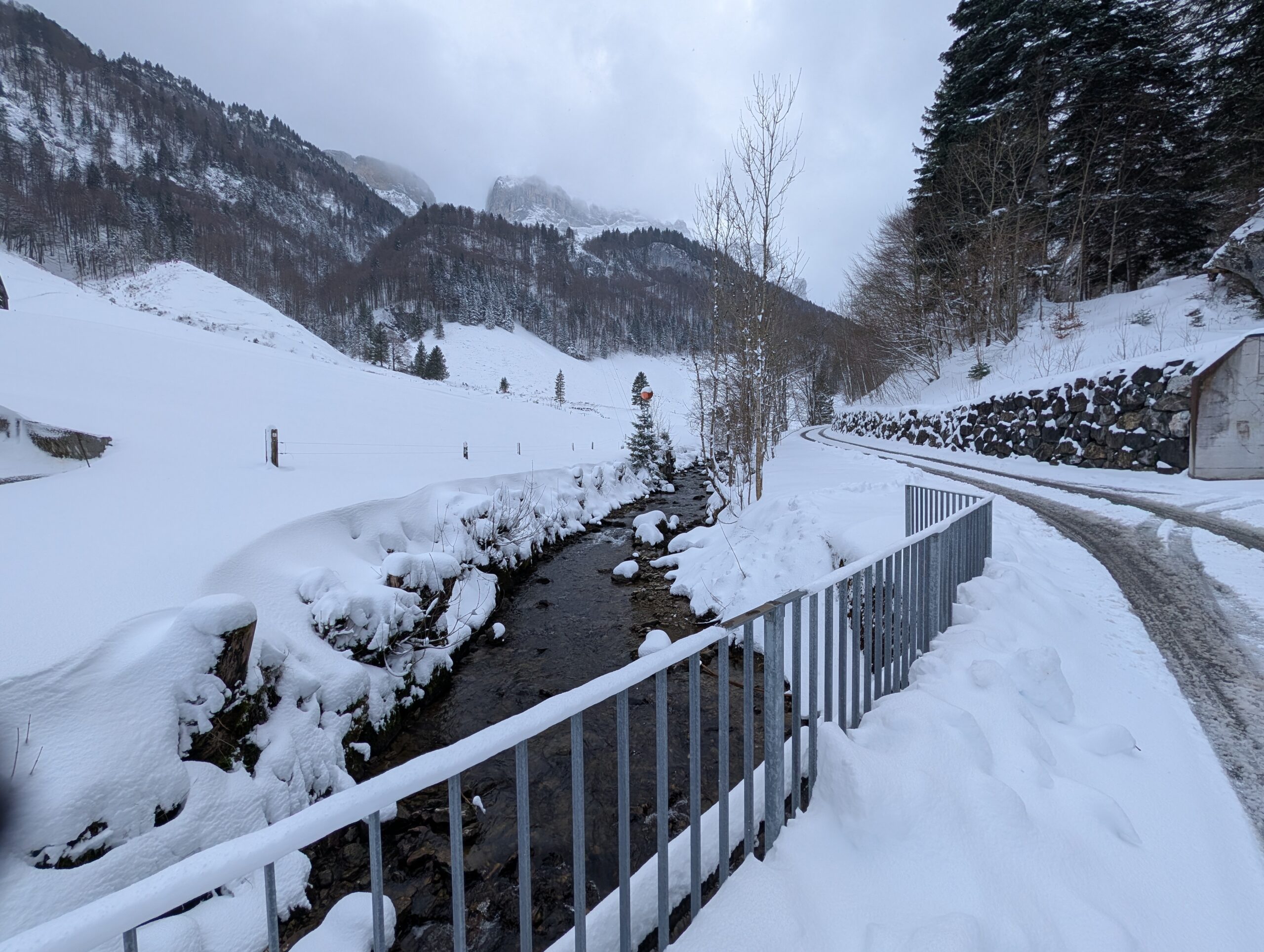 Ich folge dem Bach, der Richtung Seealpsee verläuft, Schritt für Schritt nach oben. Mit jedem Meter wird es anstrengender, der Weg steiler, der Schnee tiefer.
